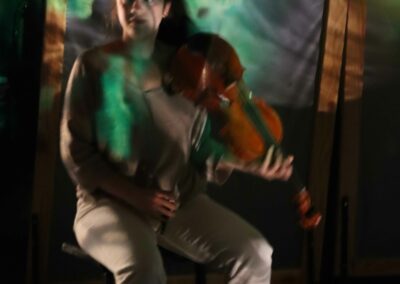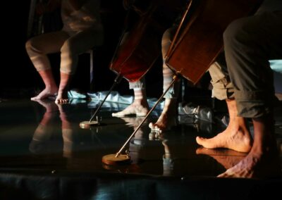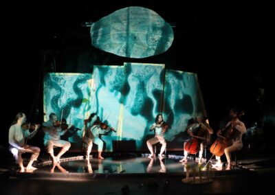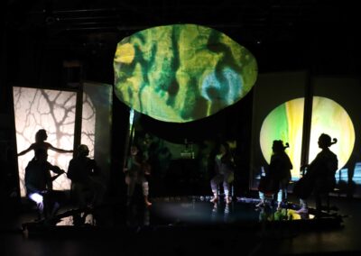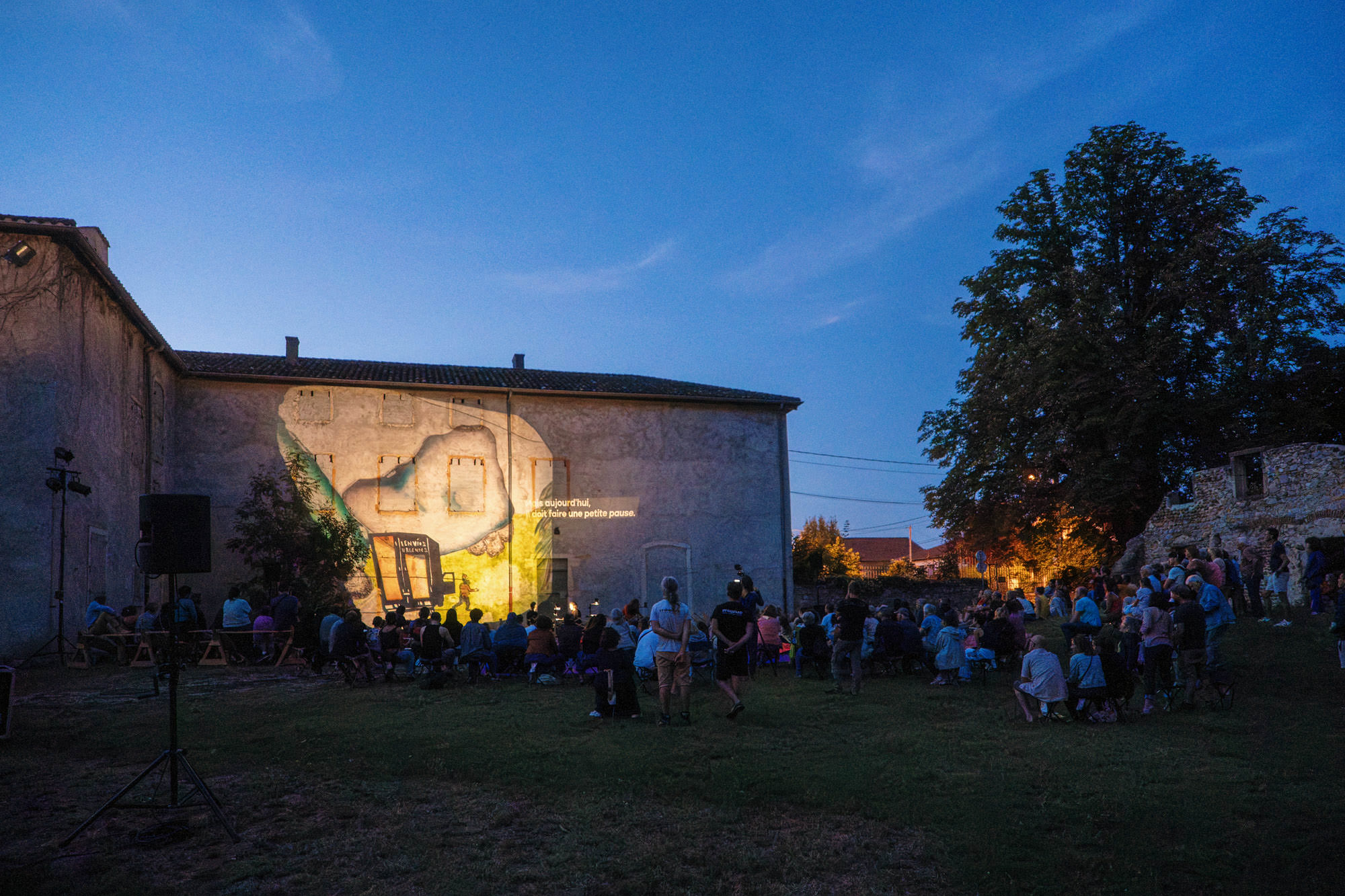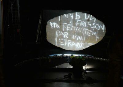 - Un spectacle en extérieur sur une place, façades, bâtisses, monuments ou en salle (noir complet)