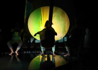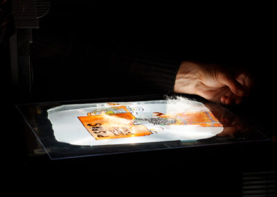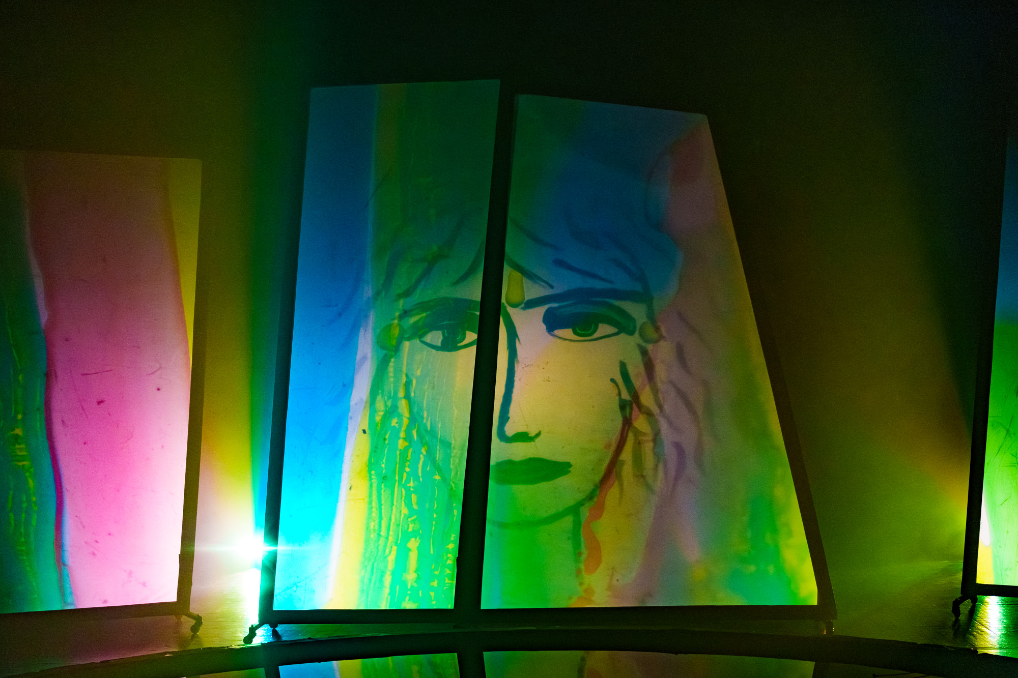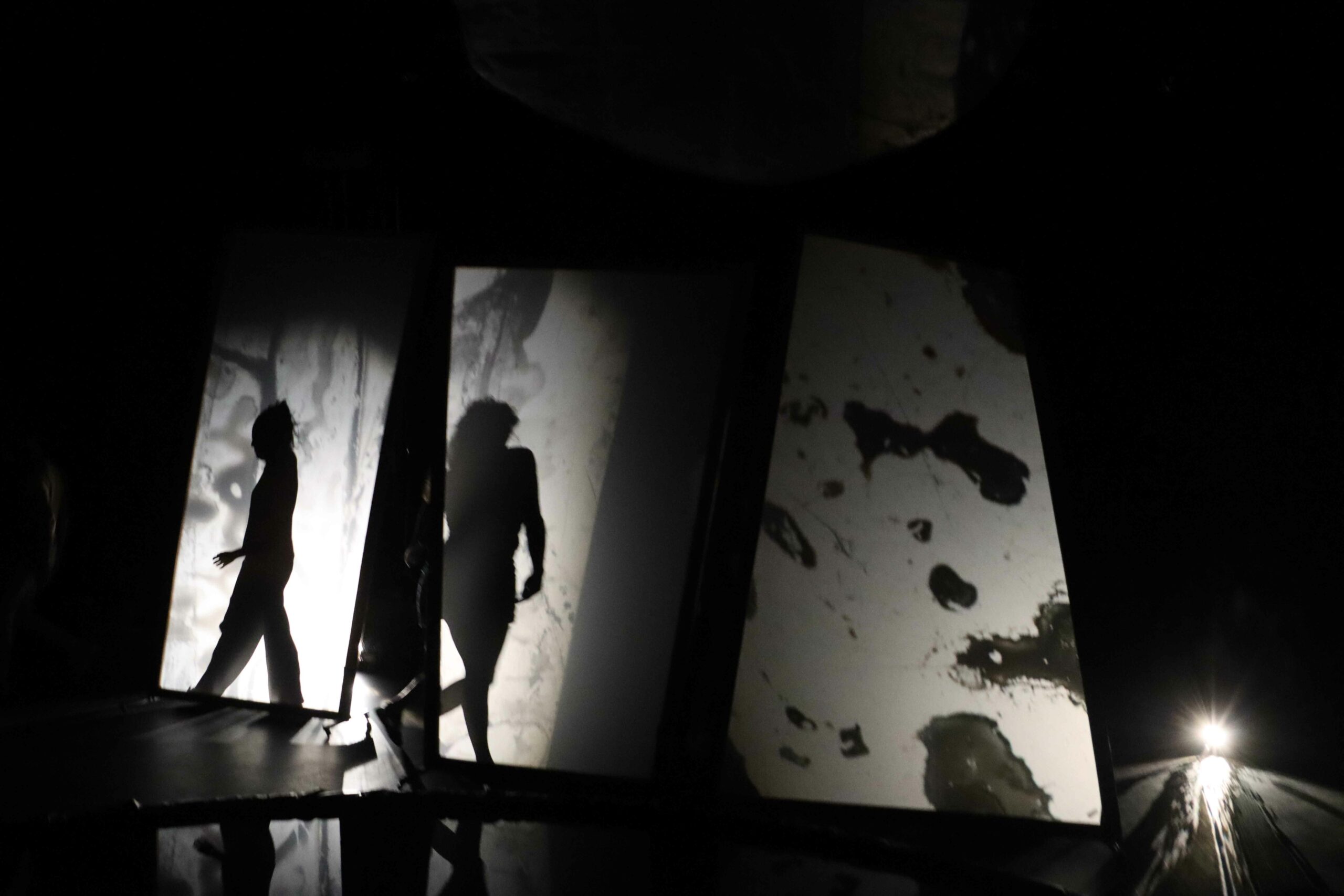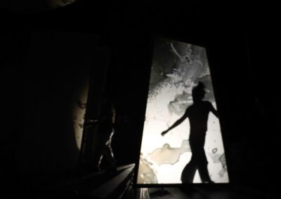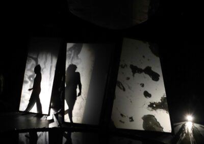 Avec Créatures, les montreurs d’ombres sont placés au coeur du dispositif. Ils déploient les images sous les yeux du public. Sur les parois, des mots et des figures apparaissent…